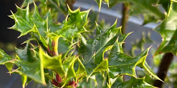 Well loved shrub and great safe space for wildlife. Dark-green glossy, spiky leaves which smoothen with age. White flowers bloom in Spring which develop into rich scarlet berries which remain through out Winter.